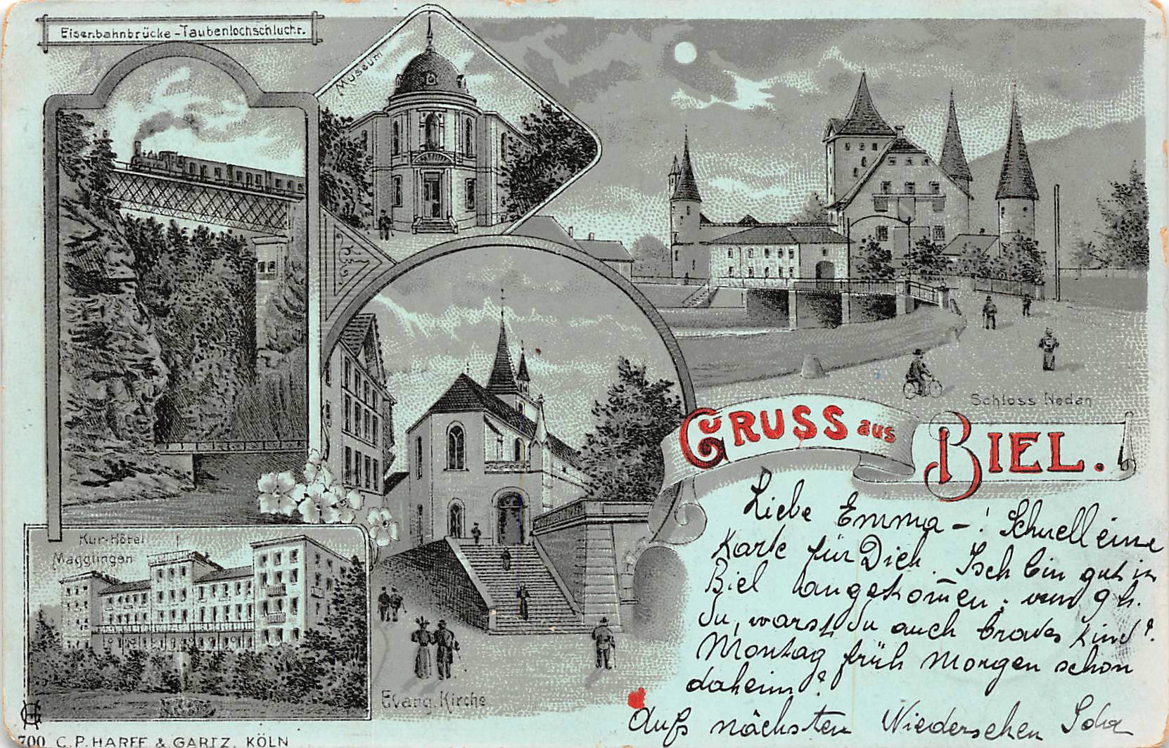 Biel, Gruss aus Biel, Kur-Hotel Magglingen, Schloss Nidau, Mondschein