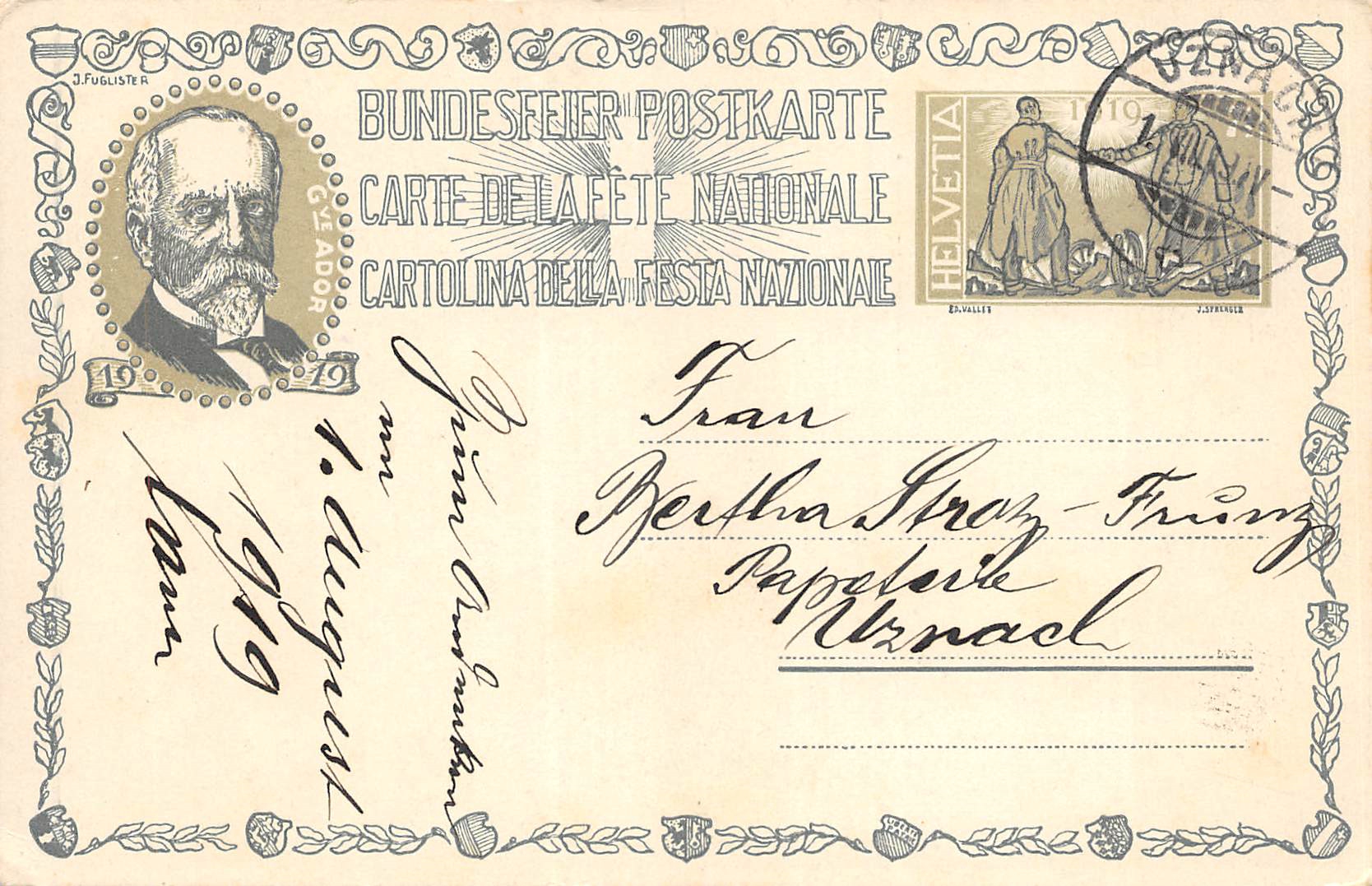Bundesfeierkarte Nr.19, gelaufen, Kat. 8.-