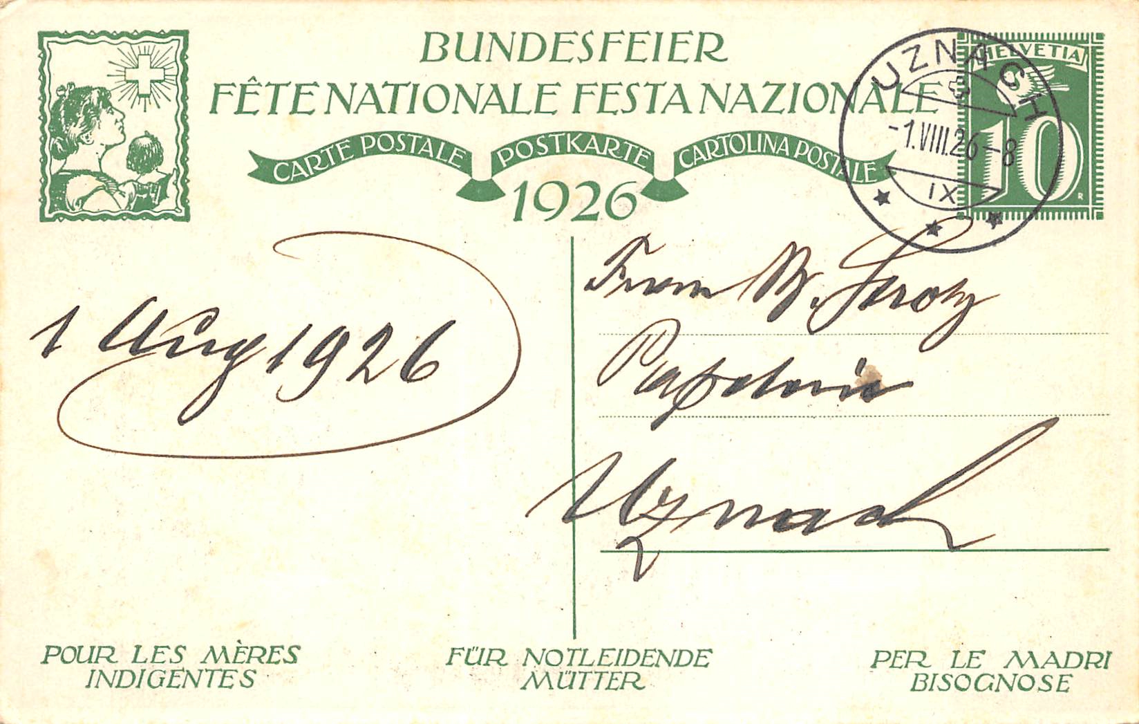 Bundesfeierkarte Nr.10 ENT, ungelaufen, Kat. 20.-