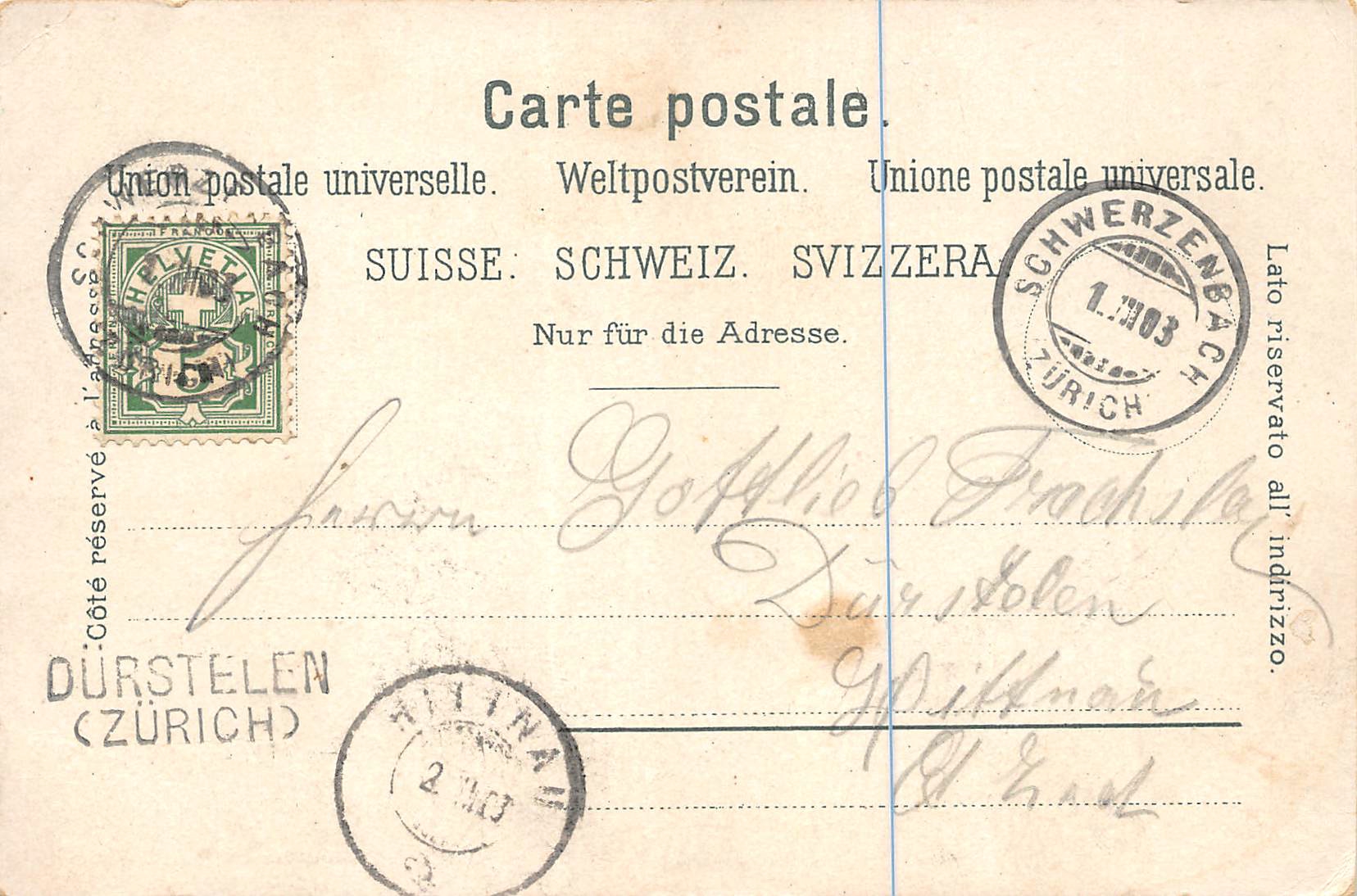 gelaufen 1903, Stabstempel Dürstelen