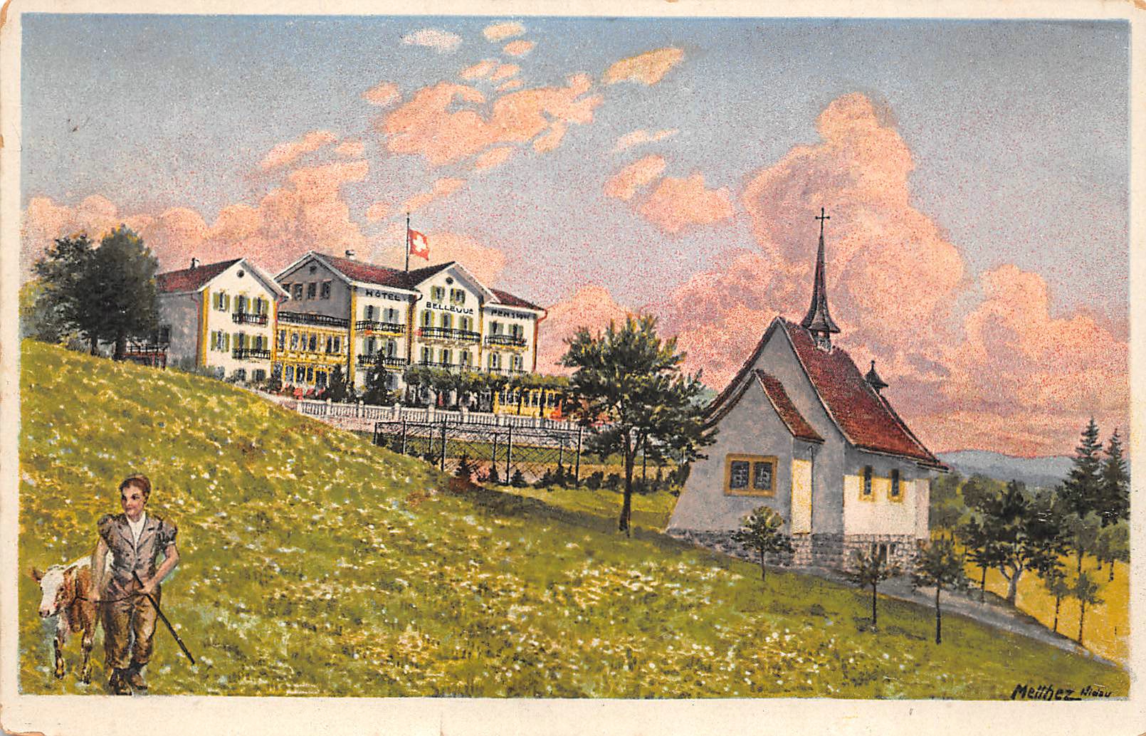 Magglingen, Hotel Bellevue mit Kapelle Menge