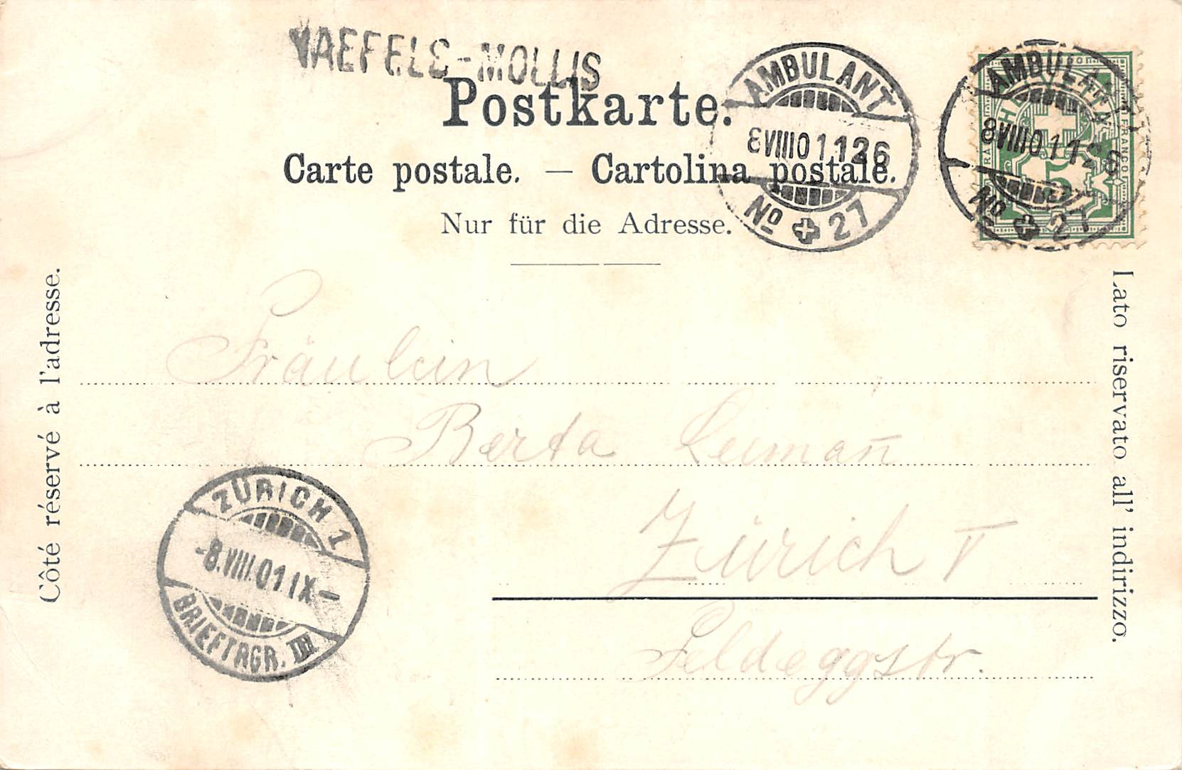 gelaufen 1901, Stabstempel Näfels-Mollis