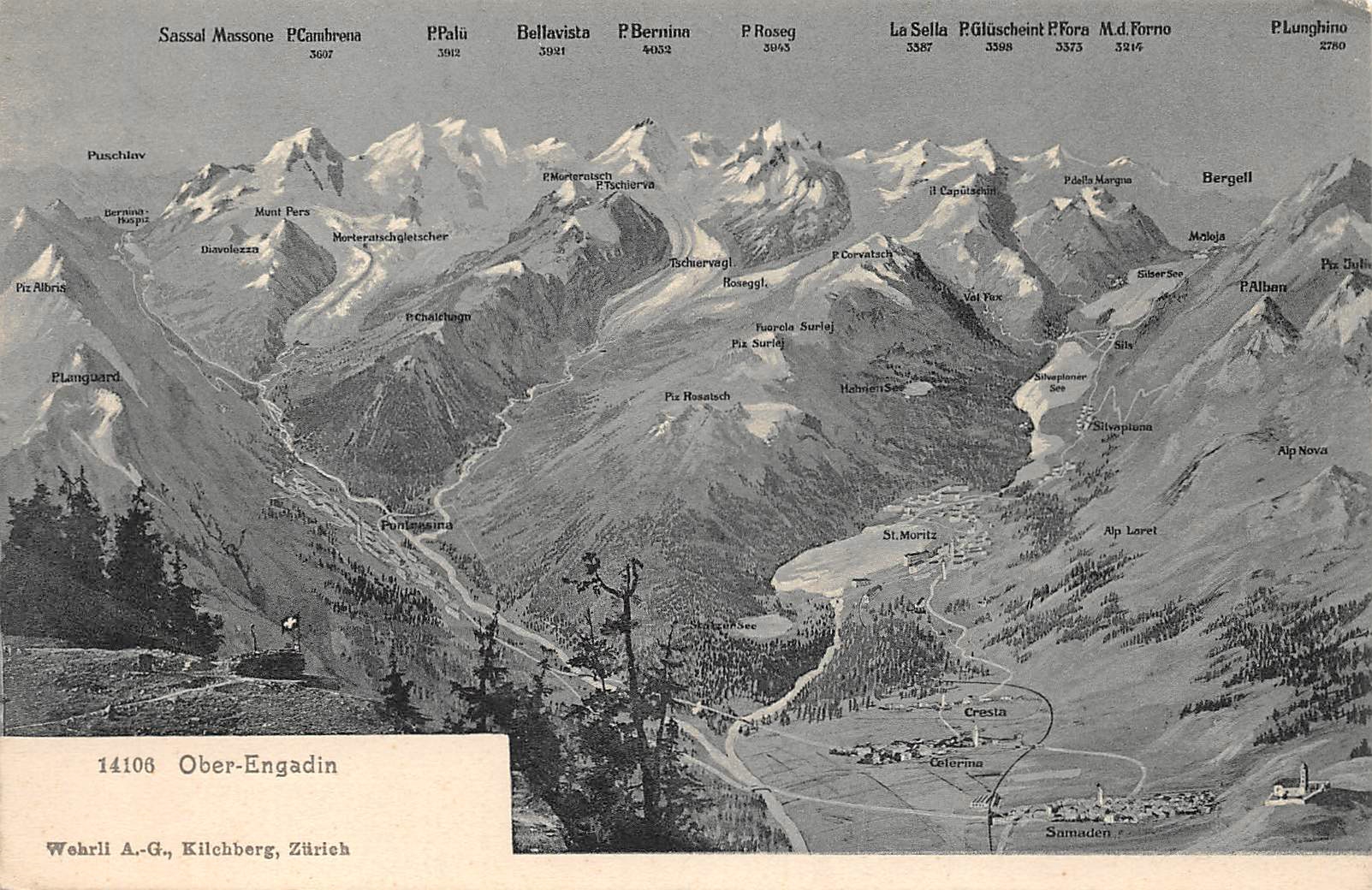 Oberengadin, Panoramakarte, Samaden, Cresta