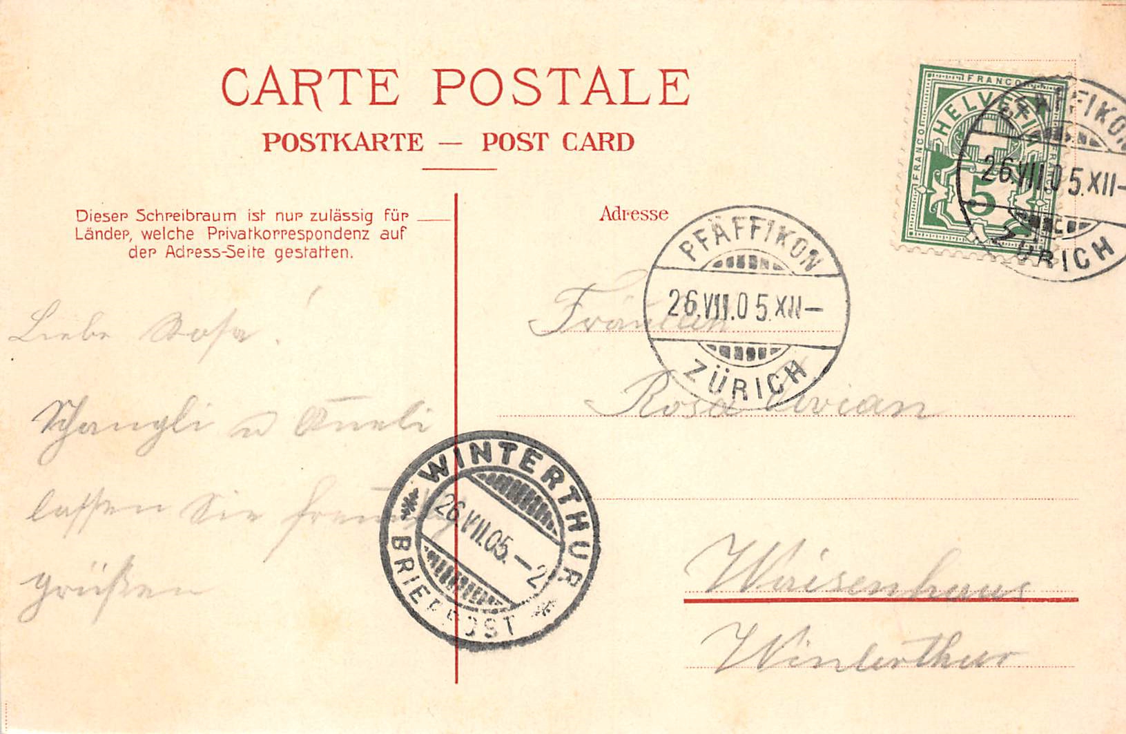 Pfäffikon ZH, Gewerbeausstellung 1905, Festkarte