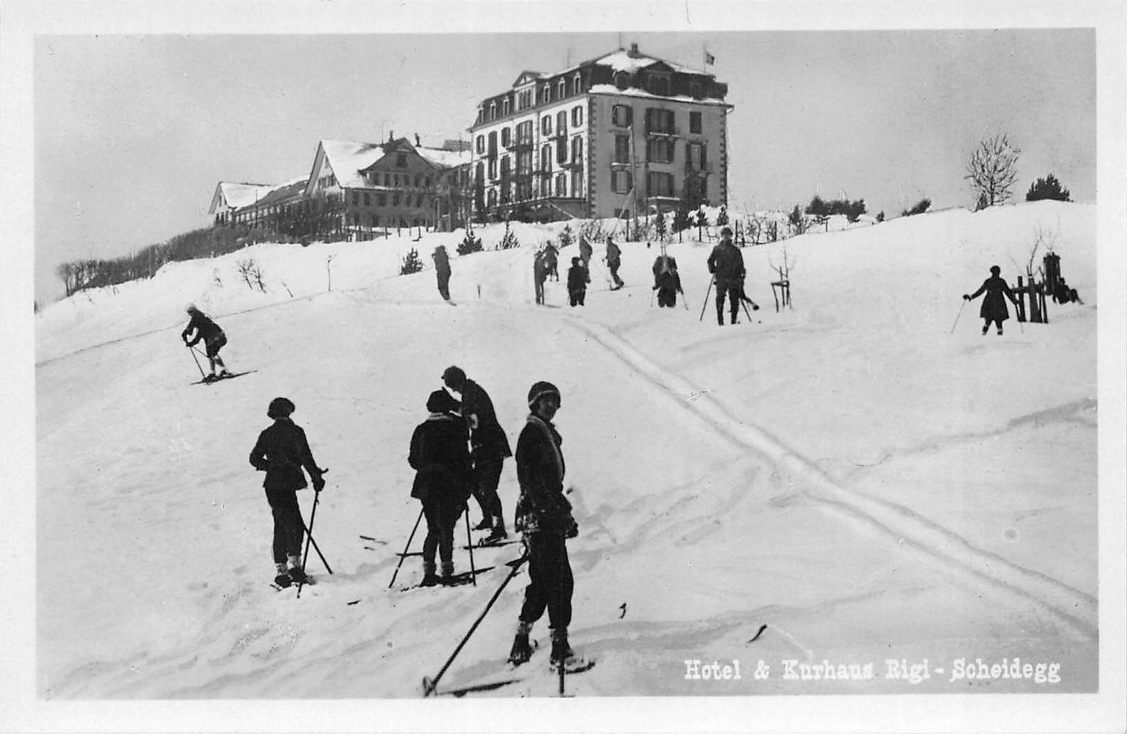 Rigi Scheidegg, Hotel und Kurhaus, Skifahrer Menge