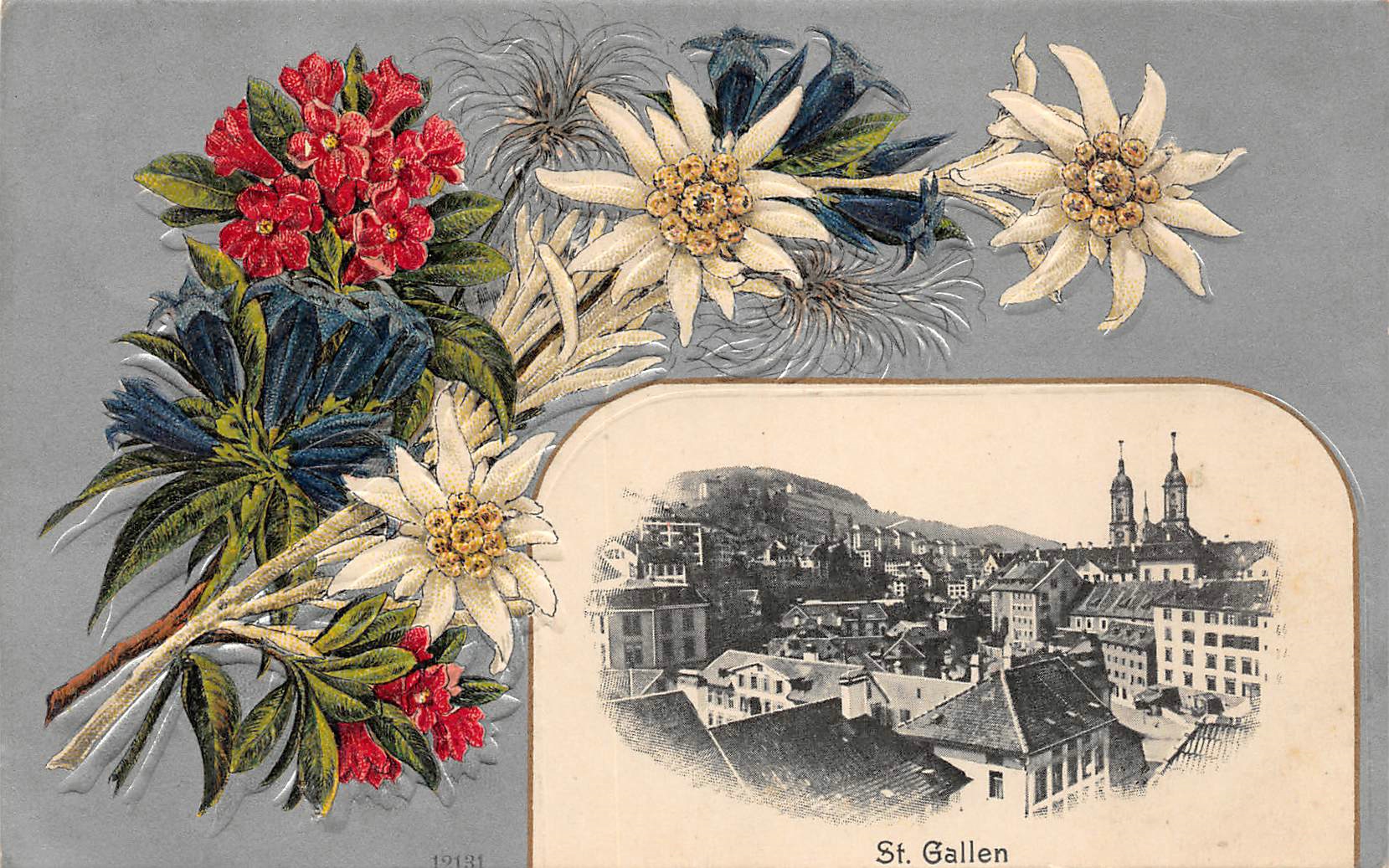 St.Gallen, Kloster, Edelweiss, Rahmenkarte, Prägedruck