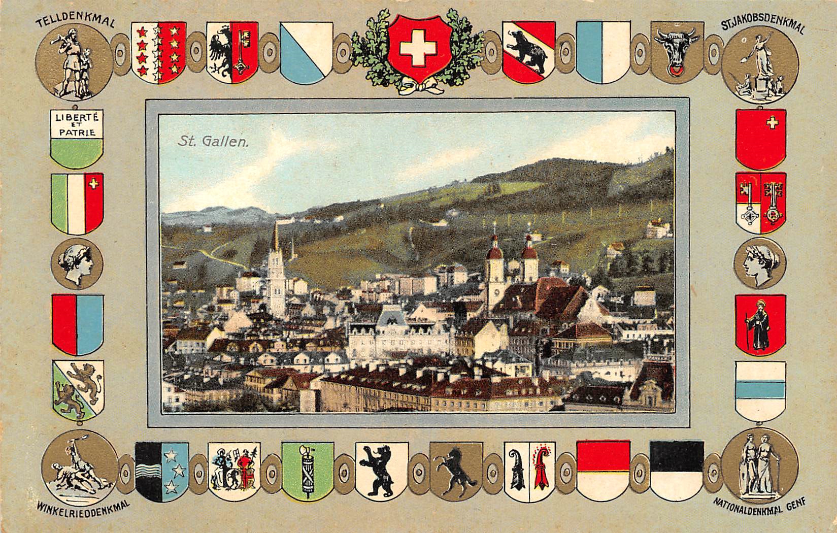 St.Gallen, Rahmenkarte, Kantonswappen, Telldenkmal