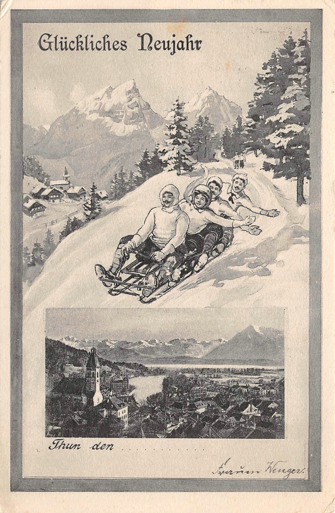 Thun, Neujahrskarte, Schlittenfahrt
