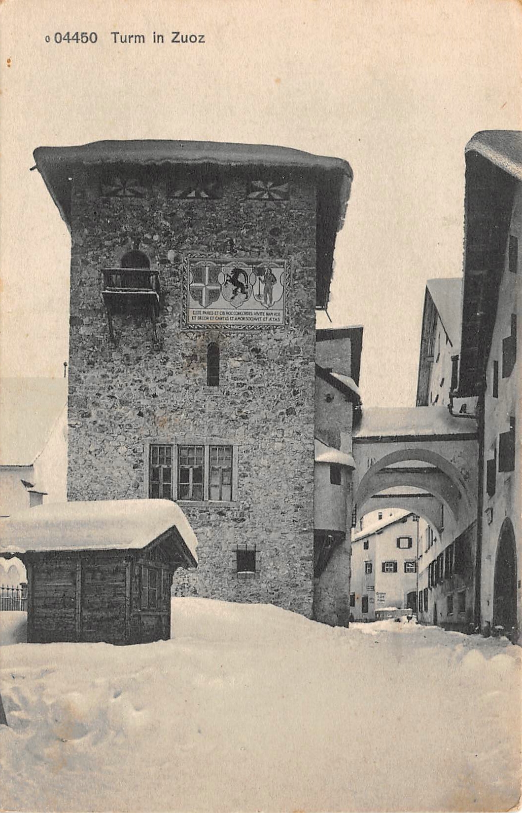Zuoz, Turm in Zuoz im Winter Menge