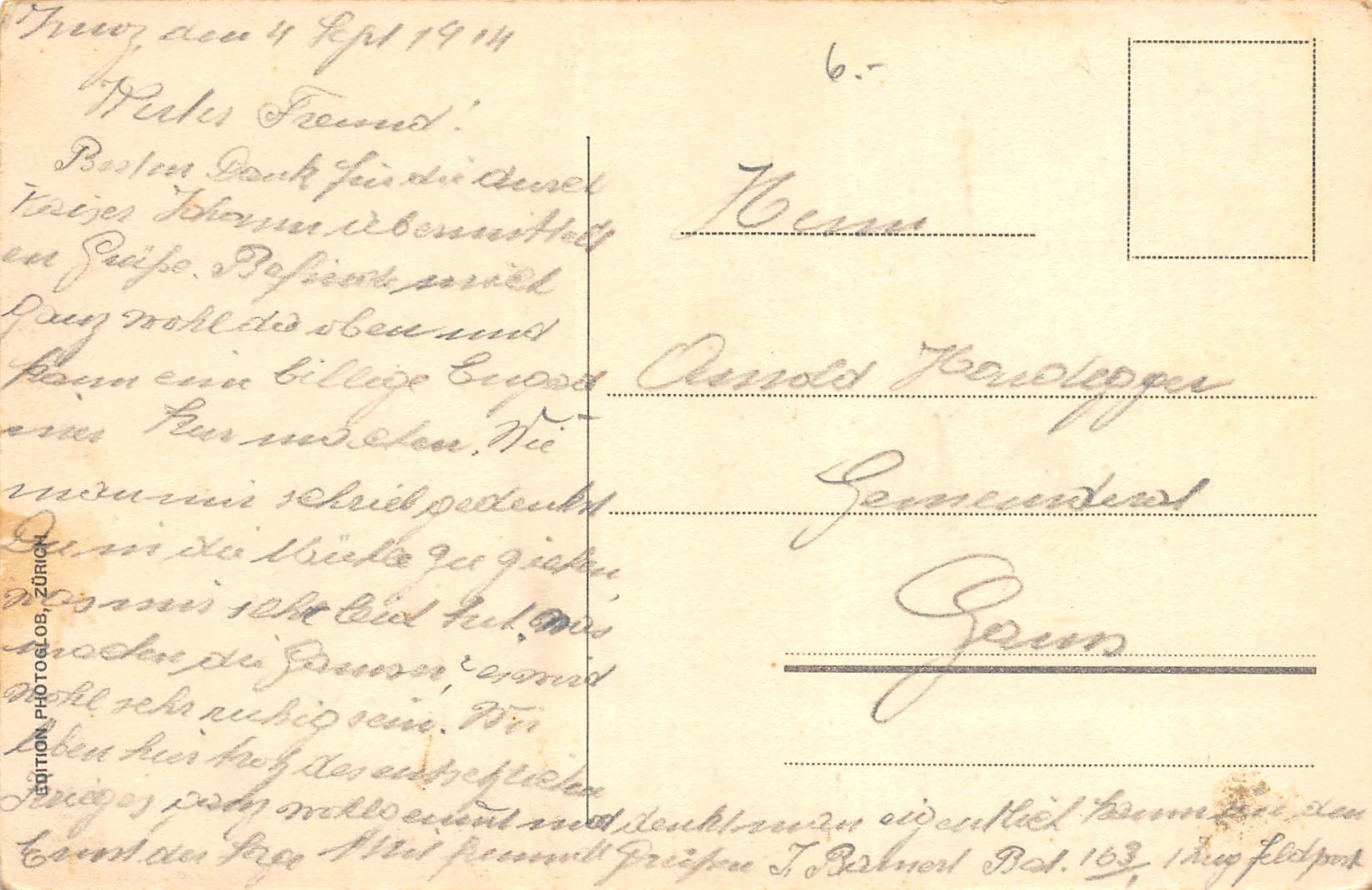 ungelaufen, datiert 1914