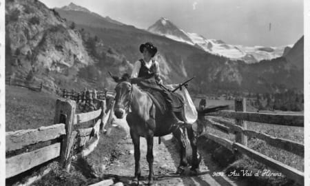 Val d’Herens, Frau auf Pferd