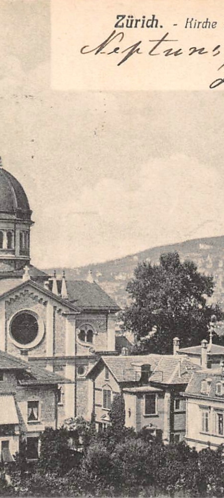 Zürich, Kirche in Enge, Gruss aus Zürich