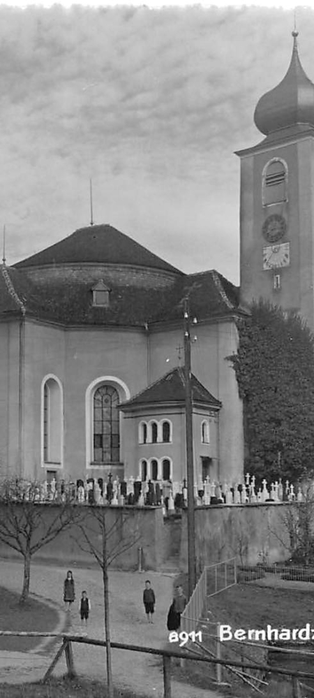 Bernhardzell, Schulhaus, Kirche und Pfarrhaus